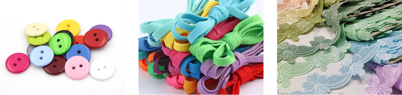 Мы работаем с разнообразной швейной фурнитурой, подбирая оптимальные методы окрашивания для каждого типа материала. Ниже — основные категории, с которыми мы работаем: